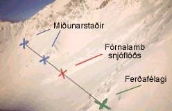 Miðaðu út þann stað, þar sem þú sást viðkomandi hverfa í snjóflóðið. Notaðu kennileiti til að miða út staðinn.